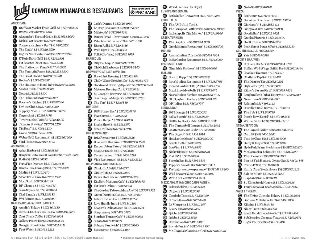 Not sure where to get dinner? Indianapolis's foodies have all the recommendations, no matter what sounds good. The culinary experiences are endless and these are the locals that know where to go. Enjoy the recommendations and utilize the map provided by Visit Indy Tourism as you explore Downtown Indy dining experiences!